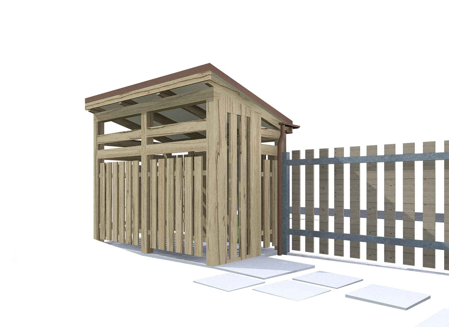 3. Projekt małej architektury: wiaty śmietnikowej, ogrodzenia frontowego.
